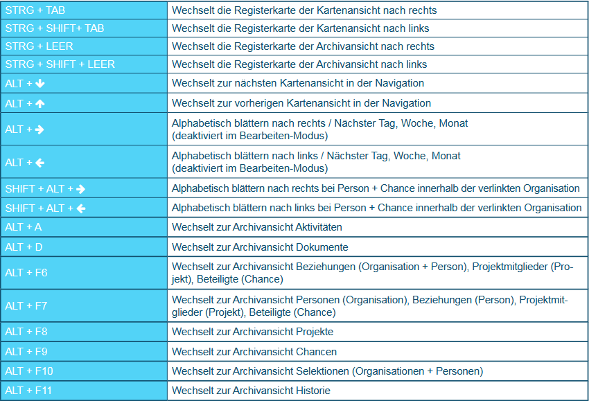Tipp: Drücken Sie SHIFT + STRG + die entsprechende F-Taste, um die Verlinkungen von Person und Chance direkt zu nutzen